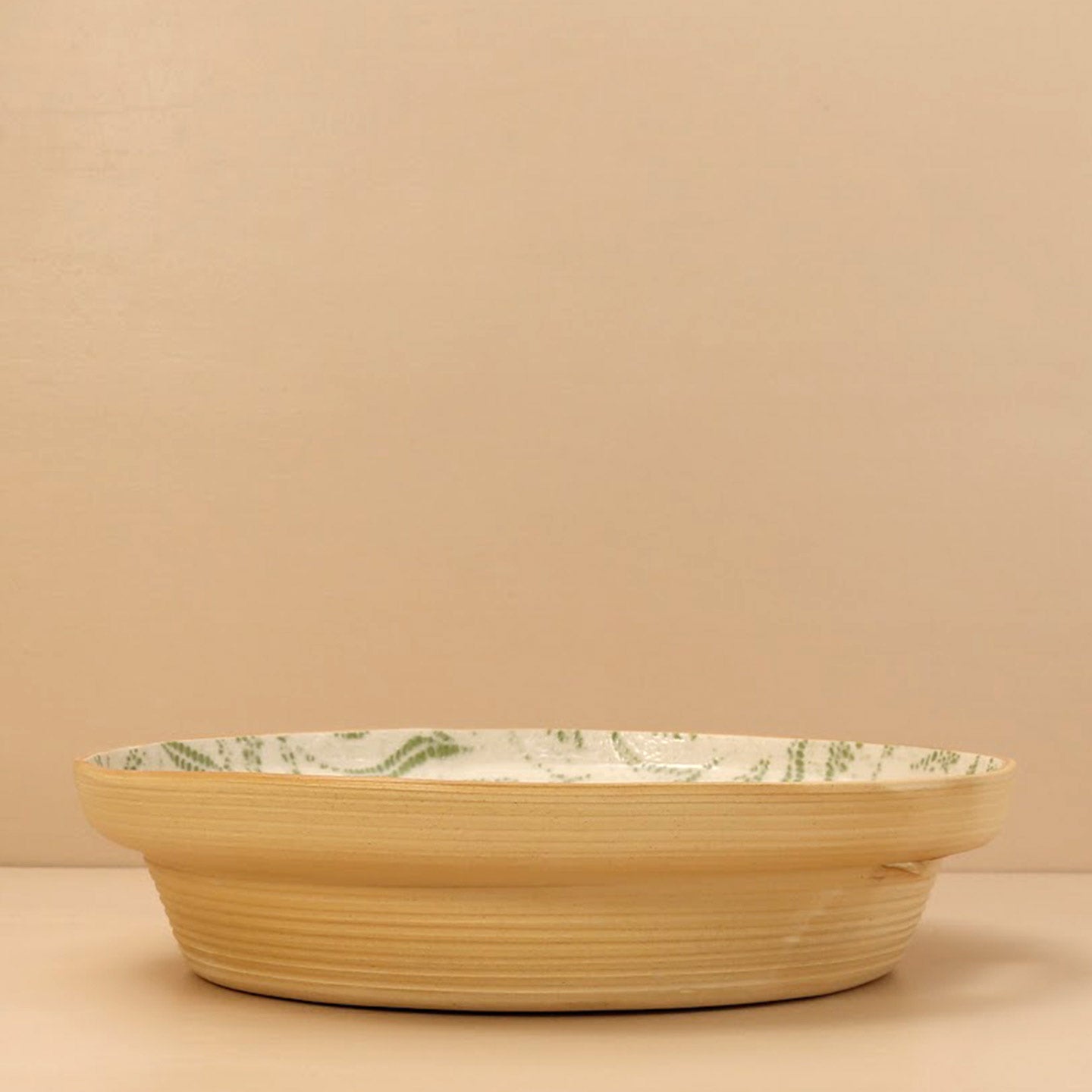 Handmade ceramic bowl made using a unique process of glazing over lace and materials to create gorgeous designs and texture. Each piece is signed and dated on the bottom.