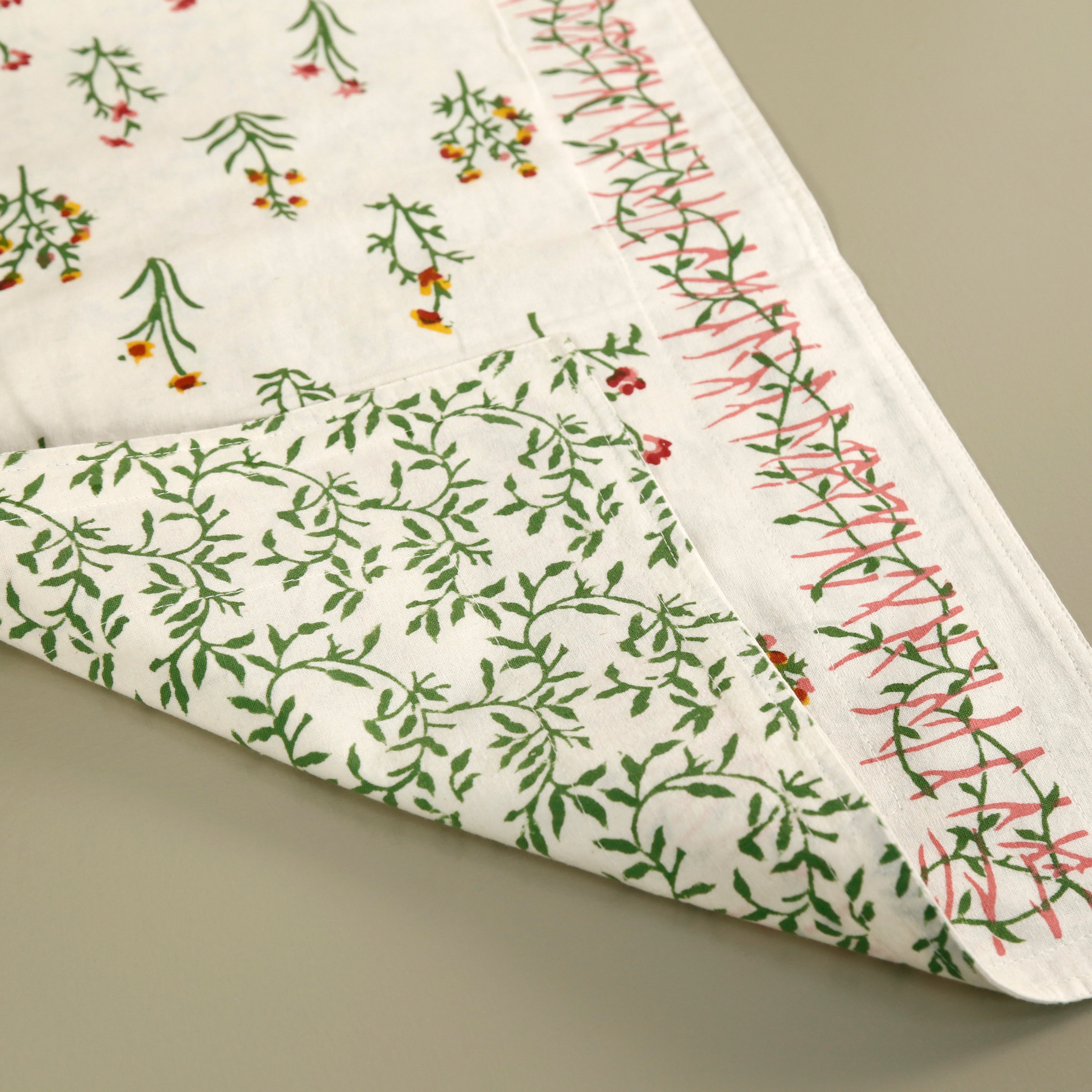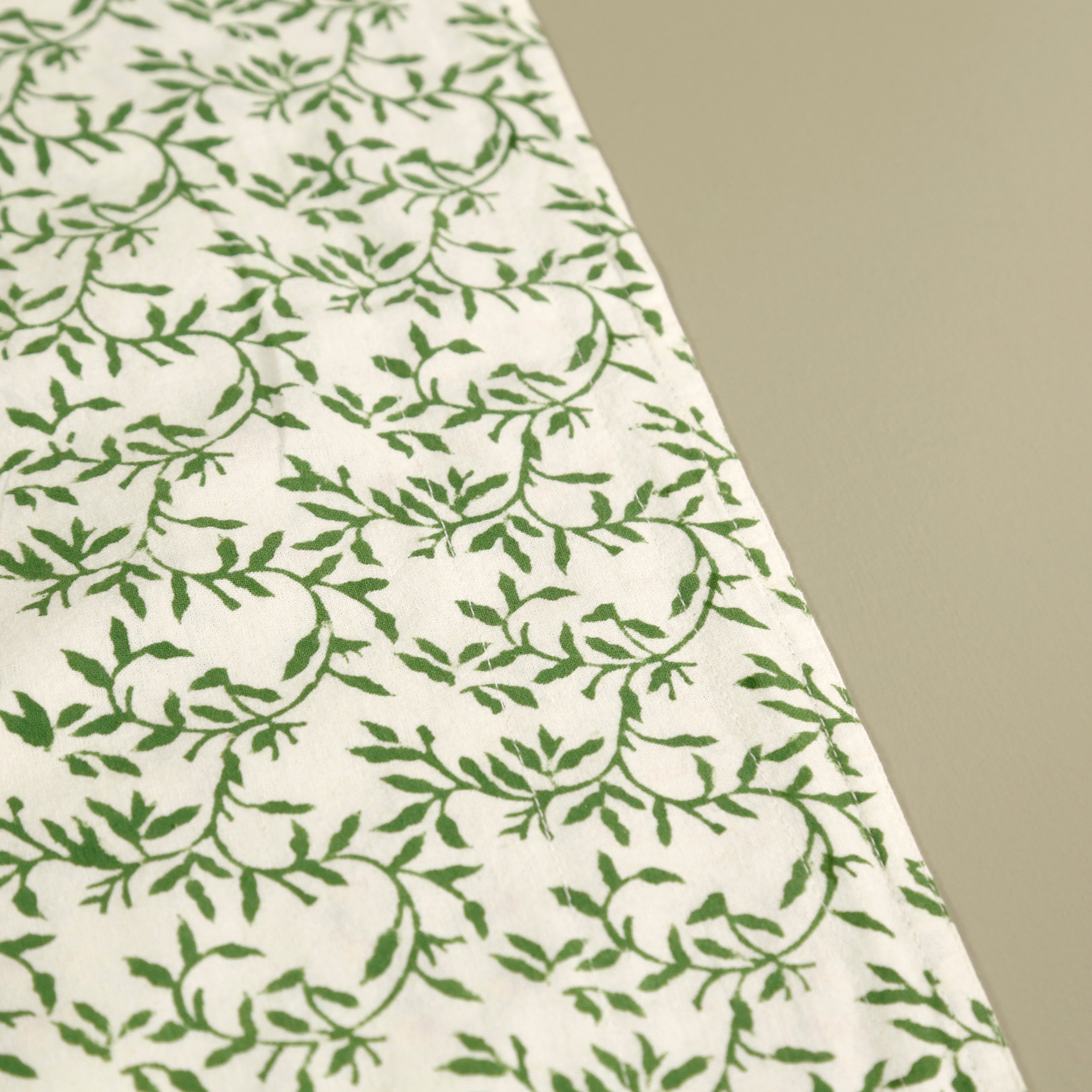 This runner is made from 100% cotton and features a hand-blocked botanical print. It is reversible, adding versatility to its design.