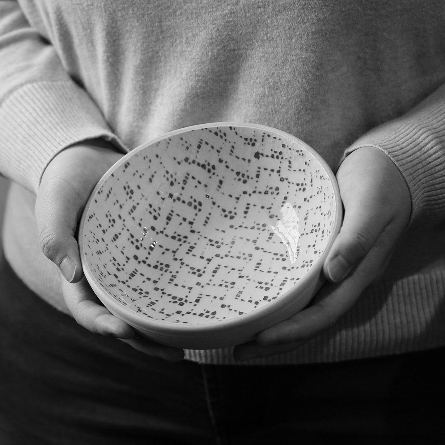 Handmade ceramic bowls made using a unique process of glazing over lace and materials to create gorgeous designs and texture. Each piece is signed and dated on the bottom.