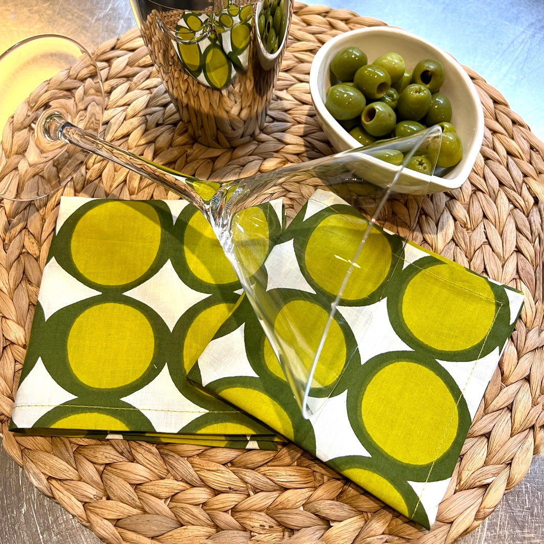 Olive Citron Cotton Cocktail Napkins 4pc