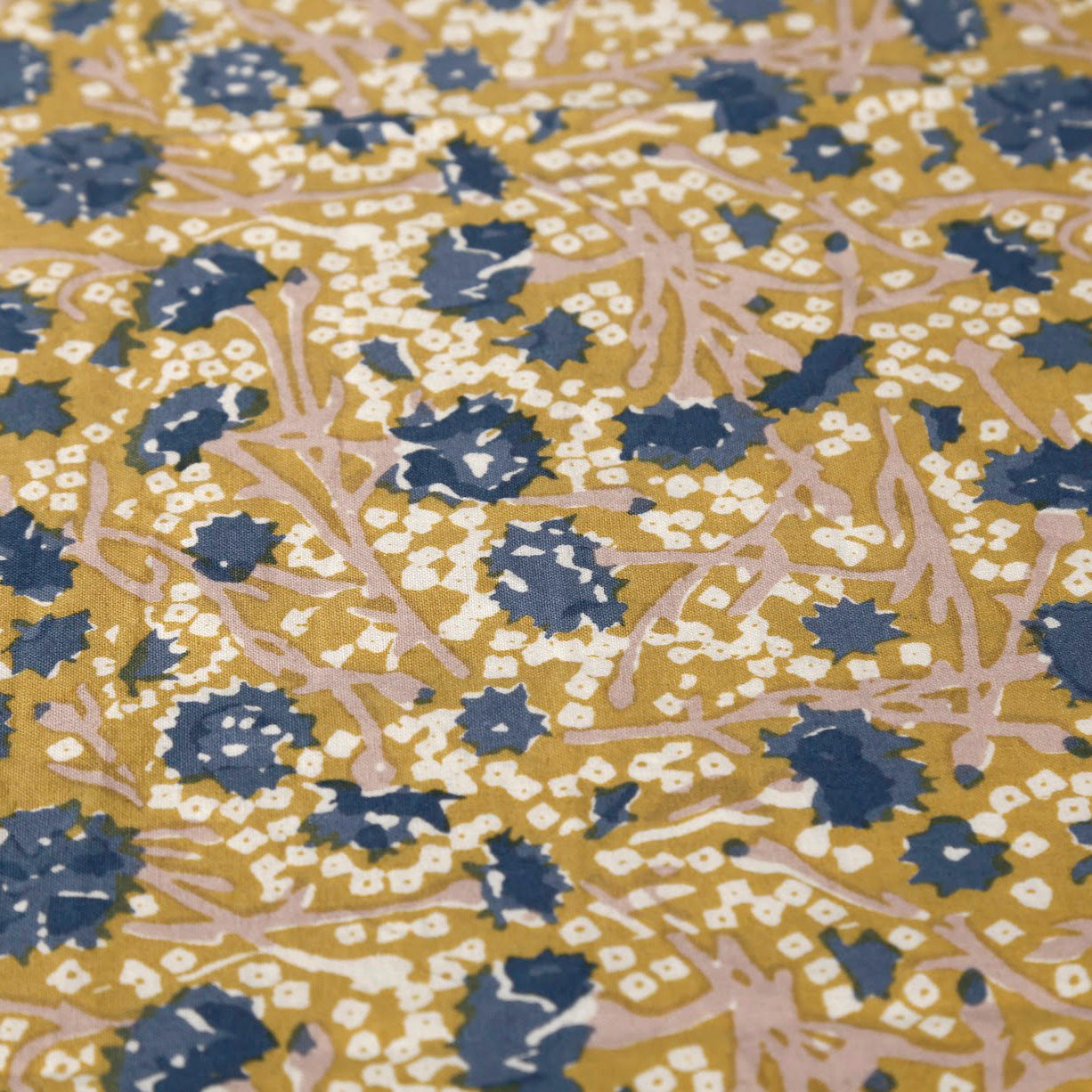 This Provencal-inspired pattern bursts forth with rich, meadow-inspired colors, adorning this French tablecloth with a delightful and vibrant display. Whether for special occasions or everyday entertaining, it sets the perfect table. This 100% cotton tablecloth has been hand-printed by skilled artisans using a time-honored technique, resulting in a singular piece of craftsmanship.