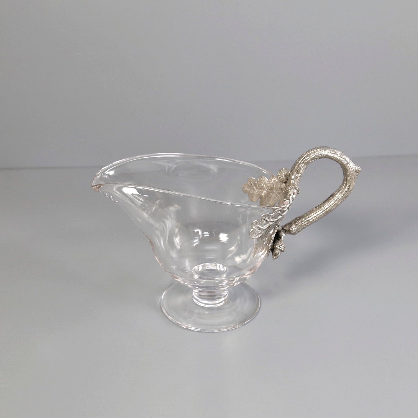 Classically footed and embellished with pewter, Vagabond House's Acorn Forest Gravy Boat makes a bold statement on any table. A thick, figural branch forms the piece's handle as it loops from the glass rim down towards the base. Exquisite acorns adorn each attachment point, while veiny leaves extend around the back portion of the design.