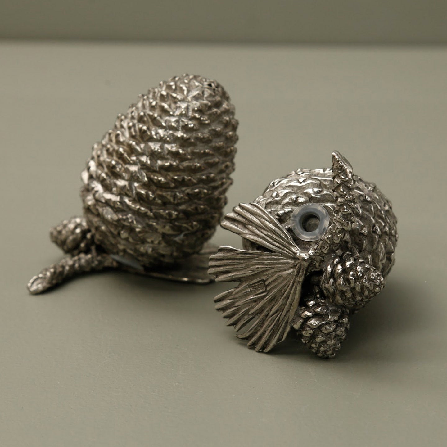 Majestic Forest Pine Cone Salt & Pepper Set is sure to be a conversation starter when used on a traditional, seasonal or holiday table. The intricate detail our designers are able to render in pewter is on astonishing display on our pine cone cluster rendition.
