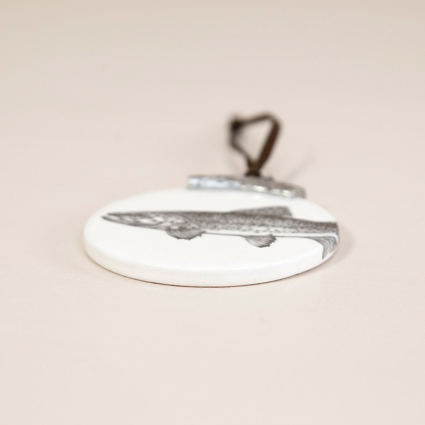 This ornament is carefully constructed from earthenware and hand-glazed with non-toxic glazes. The lead-free pewter branch at the top of each ornament is made by Danforth Pewter in Middlebury, Vermont. Artwork by Laura Zindel and made in her Southern VT studio.