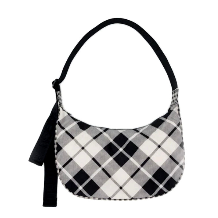 Practical doesn't have to be boring. The popular crescent shape in a new, larger size that still fits a phone, wallet, and sunglasses with room to spare.