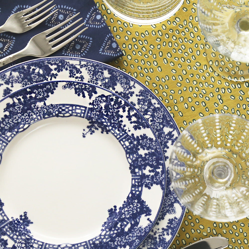 These 100% cotton block-printed tablecloths provide the perfect touch of texture and color to your tables. The easy, small scale designs curated for these tablecloths go easily with other table linens, including matching and coordinating patterned napkins. Have fun mixing and matching and enjoy the fresh and modern look of your table.