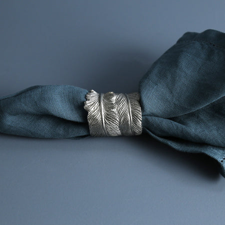 Evoking the timeless grace of scrolls and quills, and the soft beauty of feathered angel wings, our graceful Feather Napkin Rings set the mood for a unique, yet classic table. The pure Vagabond House pewter rings are exquisitely and delicately detailed as a rolled, cylindrical figural feather.