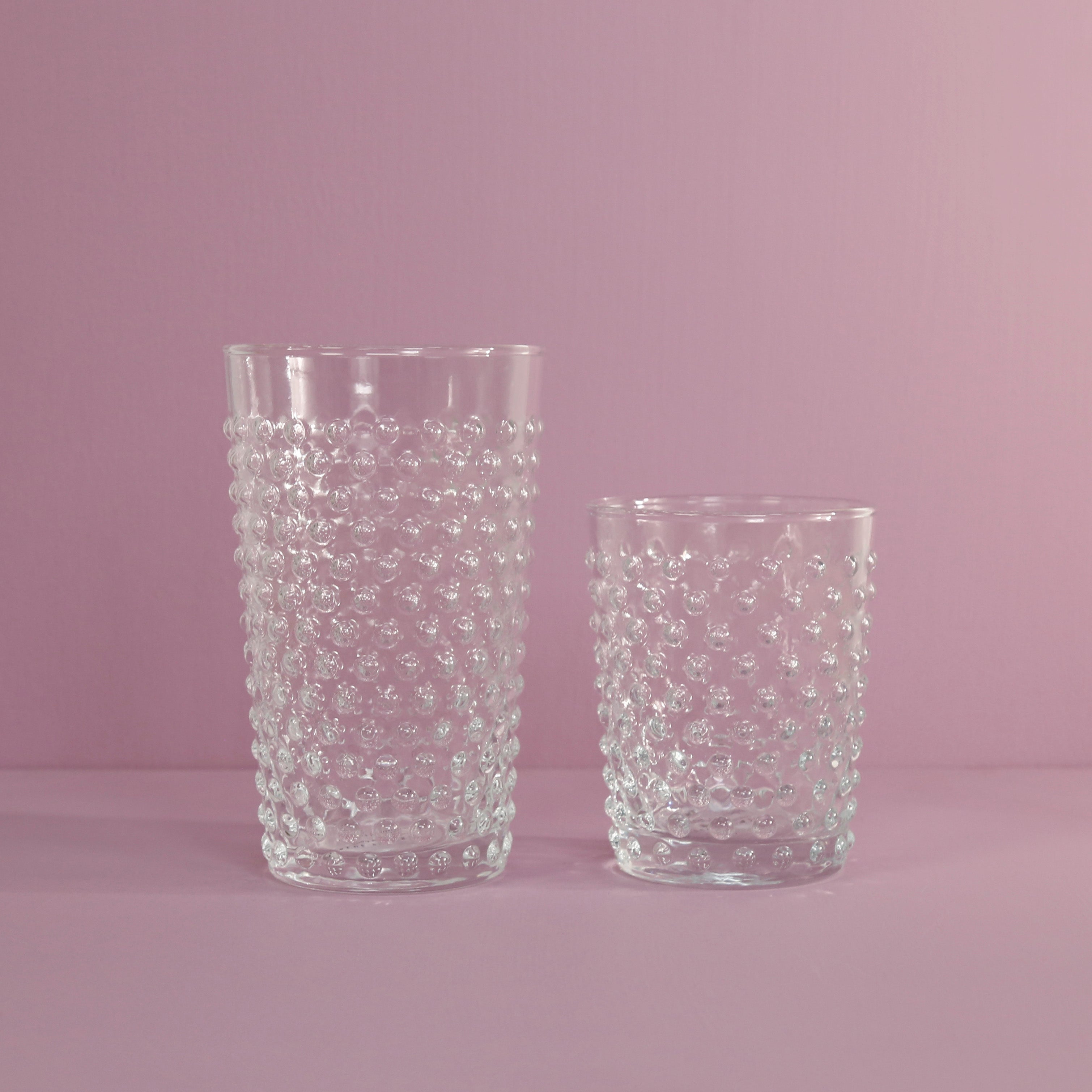 Circular raised dots give Sofia’s classic silhouette a vintage flair. The daytime staple for juice or water at brunch easily becomes a nighttime classic, perfect for cocktails shaken or stirred.