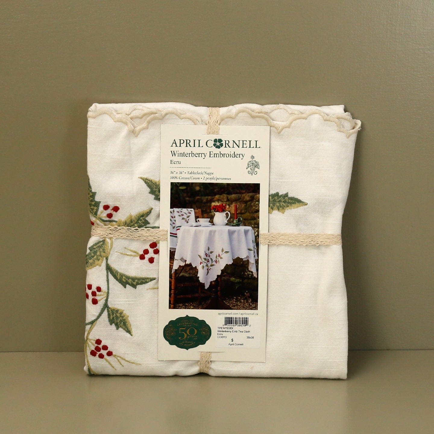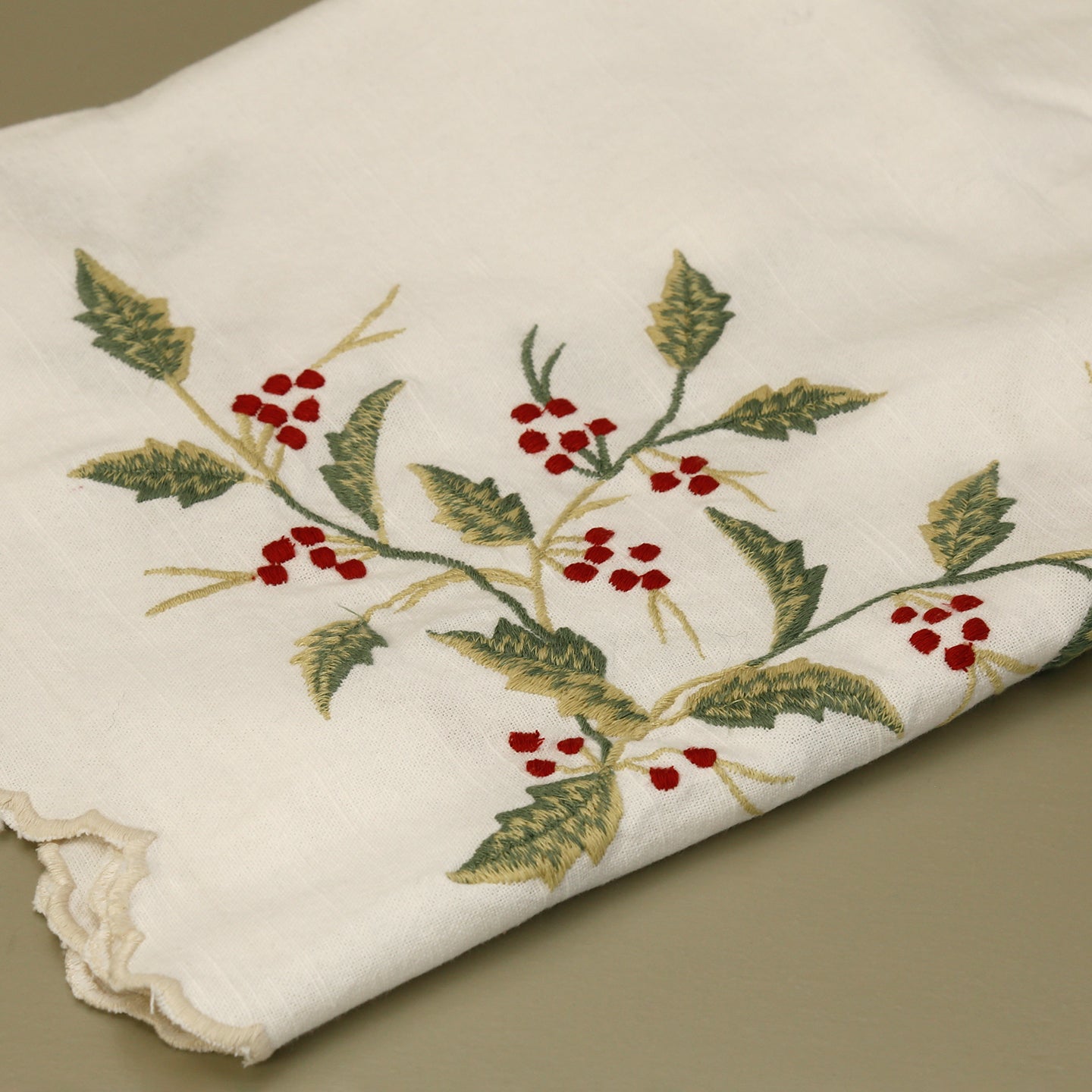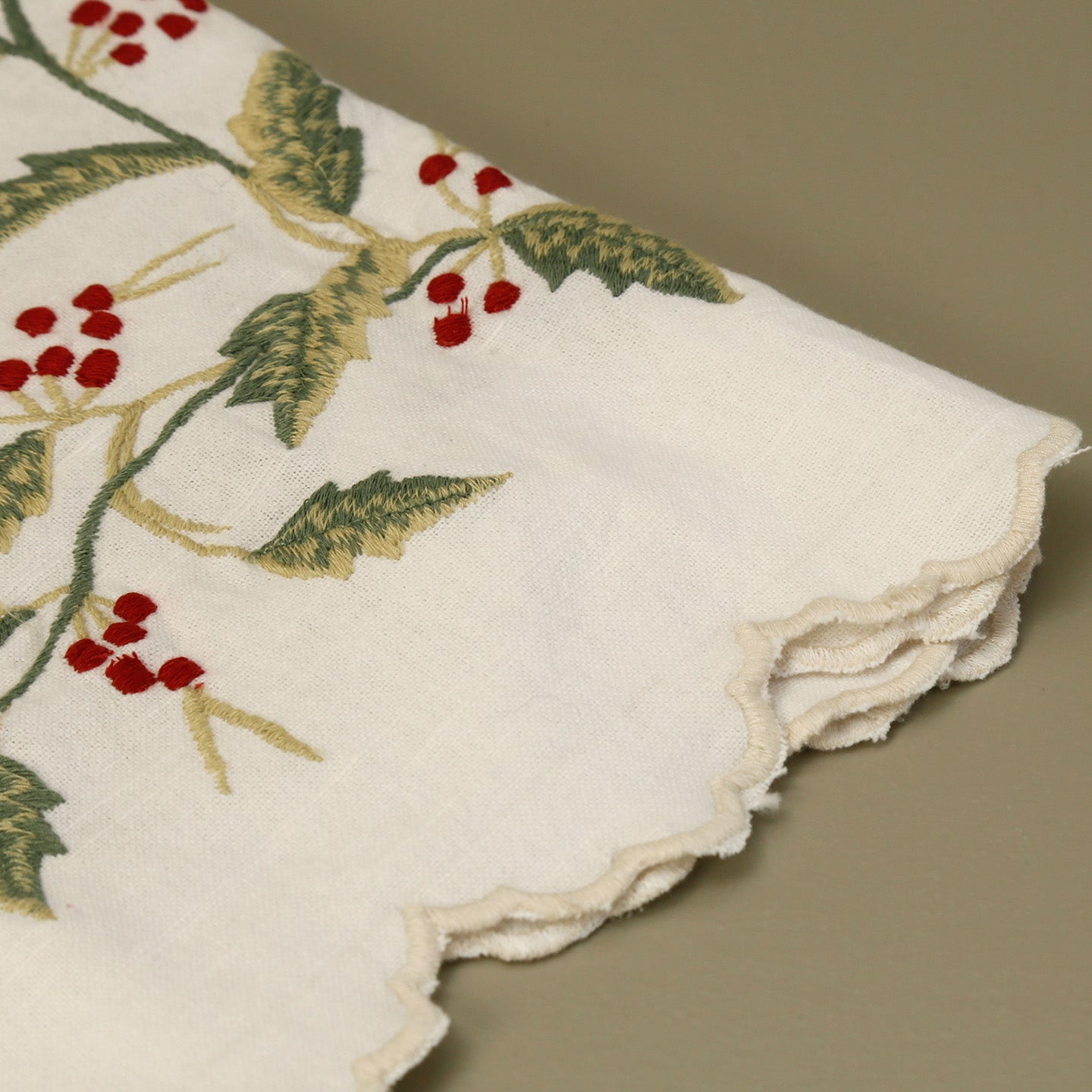 Winterberry Embroidered Tablecloth / Ecru